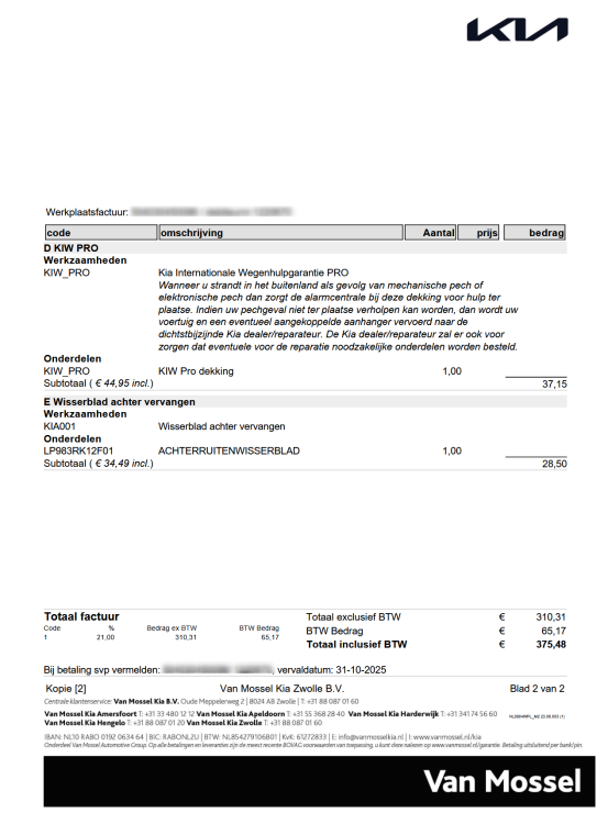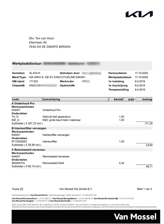 Goedemiddag Ton, Even een opmerking over jouw adres, die is vermeld bovenaan de factuur. Lijkt mij slim om die te “blurren”. Voor de rest een mooi resultaat voor de staat van de batterij. Groeten en een goed weekend, Chris1 punt