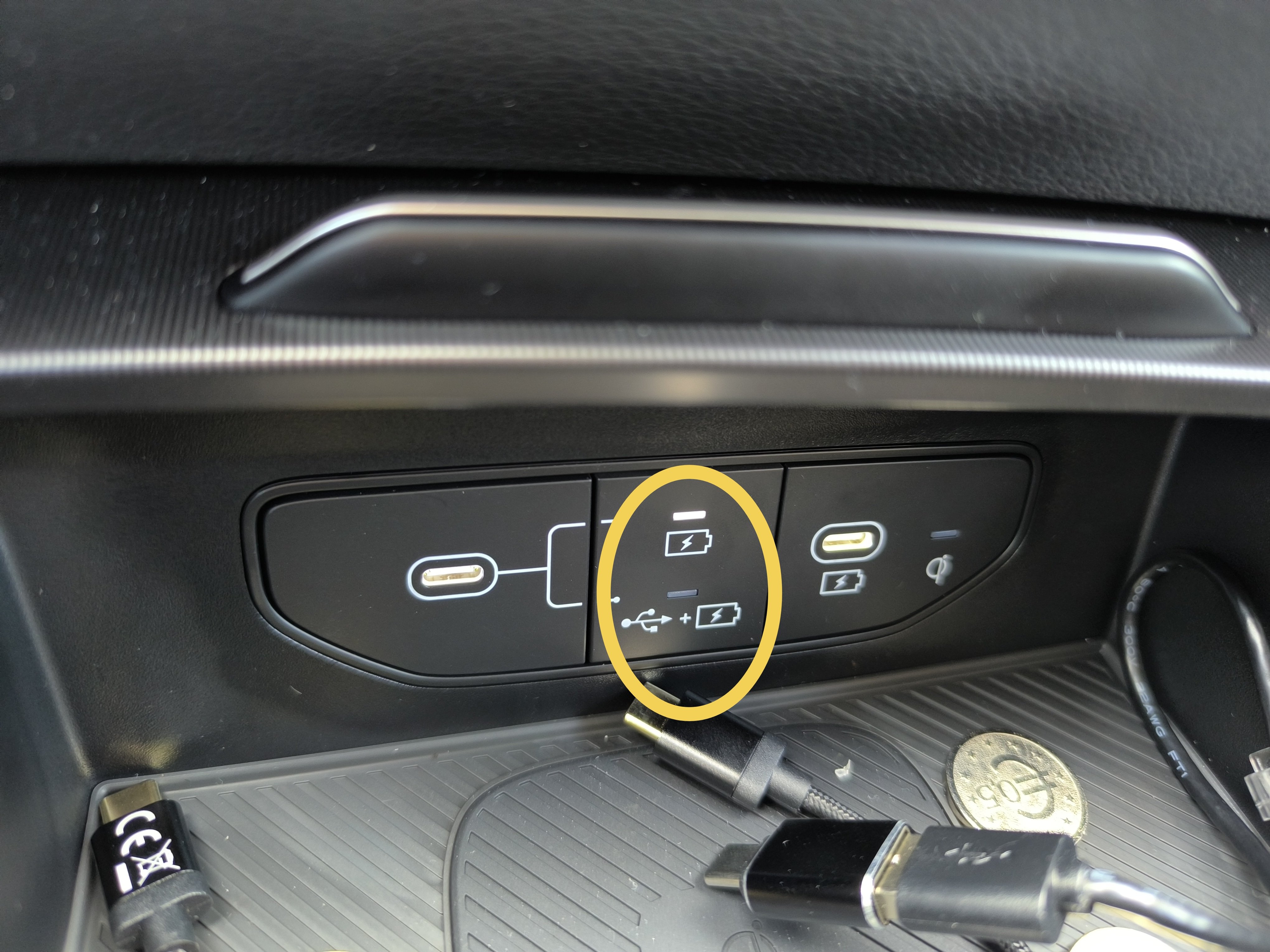Is die C-aansluiting wel voor USB? Vaak wordt C gebruikt voor enkel laden en A voor data. Wat voor icoontjes staan erbij?1 punt