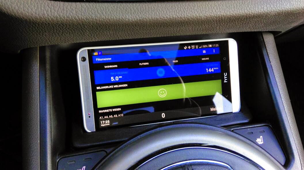 Telefoon in het bakkie... Ik heb de Kia Sportage nu enkele weken en steeds vaker legde ik mijn telefoon overdwars ik het bakje voor de versnellingspook. Maar ja, ondanks mijn grote HTC One Max, bleef hij natuurlijk nooit lekker liggen. Aangezien ik in mijn bedrijf de beschikking heb tot een schat aan materialen en machines, kan ik veel zelf maken. Ik heb vervolgens dus een soort standaard van EVA-rubber op maat gemaakt en in vorm geschuurd. De eerste proef paste precies in het bakje, maar was daardoor lastig snel te verwijderen. Het voordeel van rubbers is dat je deze eenvoudig kan toevoegen, dus nadat deze goed was heb ik hem met leer en suède bekleed. Ondanks dat hij perfect is voor de HTC One Max, past de HTC Mini2 van mijn vrouw er ook gewoon in, alleen is dat gewoon minder imposant. Overigens gebruikt ik de standaard niet altijd, maar vaak wel, want het staat ook wel mooi 's avonds. De telefoon ligt in een behoorlijke hoek in de standaard en zit bijzonder stevig in zijn zadel door de gebruikte materialen. In mijn eigen (lees - andere) auto kon ik hem gewoon op de grond aan de passagierszijde zetten en dan bleef hij gewoon de hele weg staan. In de Kia wordt hij enigszins geklemd in het bakje. Ik heb speciaal voor de Kia een minuscuul USB-stick gekocht van 64GB, dus dat kwam nu mooi uit, want die zit er achter. Maar je haalt de standaard in een handomdraai uit het bakje en in je middenconsole of dashboardkastje. Gelukkig heeft een grote telefoon ook het voordeel dat de accu vele malen langer meegaat, zodat ik niet direct de USB-aansluiting nodig heb. Of het 200% veilig is durf ik niet te garanderen, in ieder geval niet voor de telefoon in een 'worst case scenario'. Pic's, or it did not happen! Het eerste prototype. Final-versie bekleed met leer en suede. Inclusief telefoon met een foto van de telefoon en ... flitsmeister, de aanleiding tot het geheel. Kat in het bakkie... En als laatste een wazige, waarvoor excuus, maar wel van het geheel. Heftige console zo...! Wie weet zet het aan tot een idee, wie weet niet...- 9 antwoorden