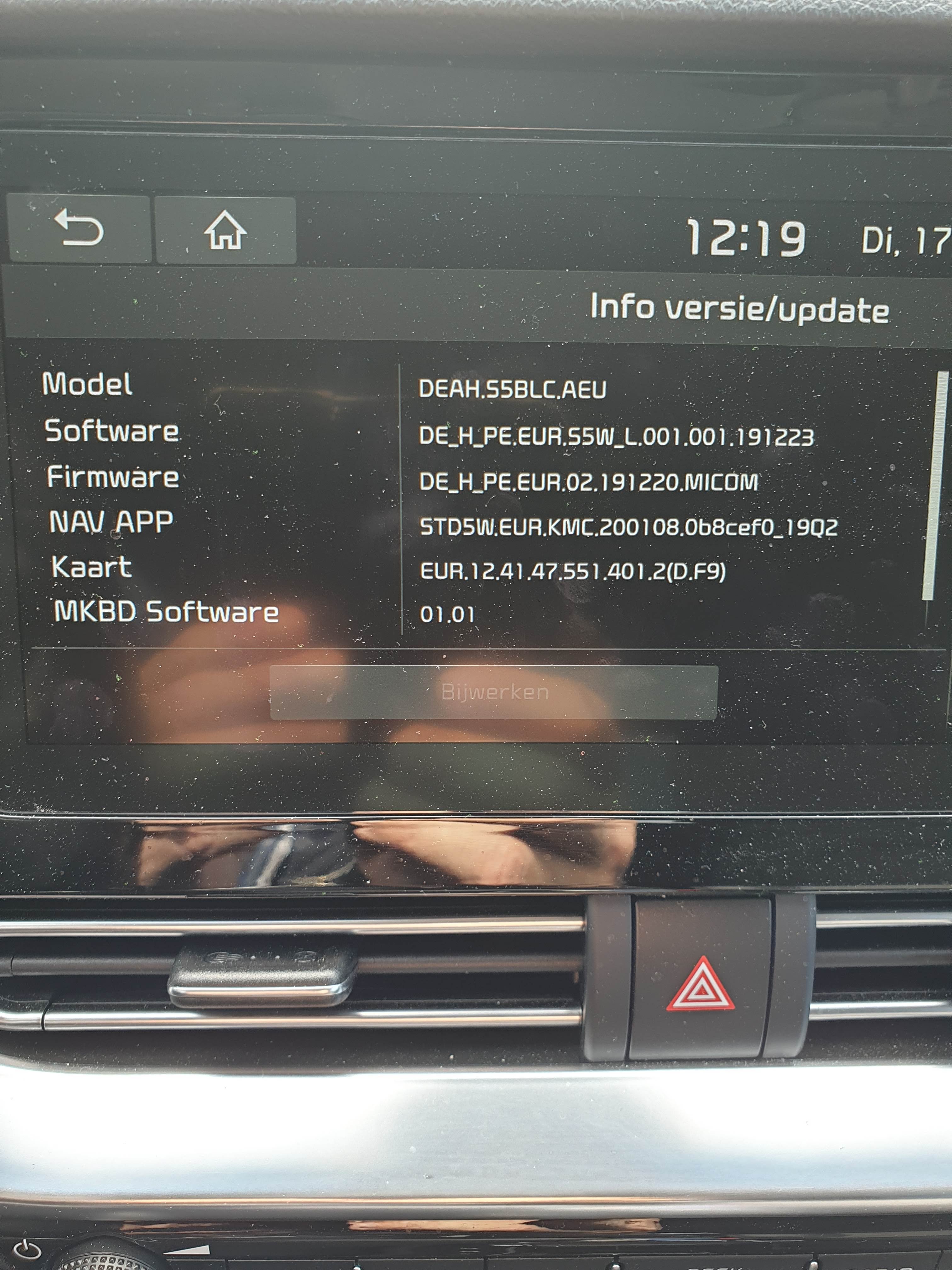 hallo ik heb de software versie 220107 erop staan op mijn kia niro model2020 en nu valt mij op dat soms als ik de auto uit zet en dan als ik later weer weg ga dat de tijd in de navigatie stil is blijven staan o pde tijd dat ik de auto heb uitgezet . je kan de tijd handmatig wijzigen , wat ik ook heb geprobeerd is het vinkje gps tijd uitzetten en als je de tijd wijzigt dan staat de tijd weer goed maar zodra je de gpstijd weer aan zet gaat hij naar de tijd van toen ik de auto uit heb gezet . nu heb ik dit al 2 keer gehad en de 3de keer heb ik niks gedaan en alles zo gelaten auto uitgezet en na circa uur weer aangezet en wat blijkt de tijd is dan weer goed . of de gps is van slag of er is een software fout . gr johan kia niro dynamicline bouwjaar 2019