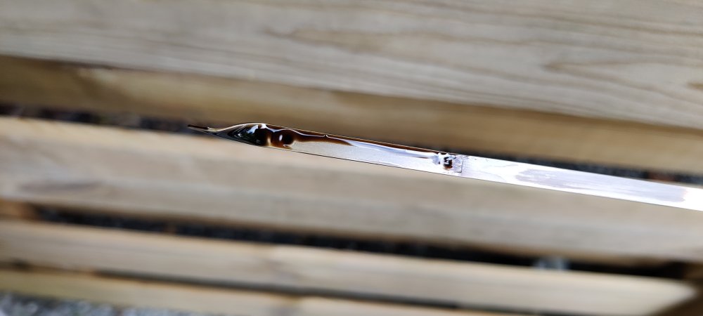 4. De meting heb ik inderdaad zo uitgevoerd als dat jij omschrijft. Behalve dan de warme motor. Ik heb puur de motor heel kort aangezet om naar een iets rechter oppervlak te rijden (ardennen, dus veel schuine opritjes). Motor heeft dus niet langer dan 1 minuut gedraaid. Thanks voor de uitleg van de twist haha! Blok heeft uit mijn hoofd nu ongeveer 70 duizend gereden. De beurt was misschien een maand voor aankoop al gedaan en ik lees overal de olie vrij snel alweer zwart word. Ik rijd ook best veel. De dikte lijkt mij verbeelding. Het viel op mijn hand en vond het dunnig tonen en de foto houd ik het schuin, dus het liep toen naar elkaar toe ! Ik vind het wel vreemd dat de meting bij mij vanaf het laagste puntje als een streepje doorzet. Misschien toch maar naar de lokale Action om een can met 5W30 te halen...