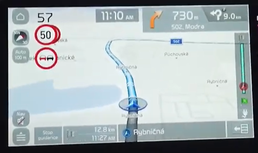Ik heb een paar vragen over het navigatie scherm van MY21: Links bovenin het scherm staat tijdens het rijden een verkeersbord. Vaak zie je dat er nog een bord achter zit (zie bijlage). Als je op het bord klikt zie je een keuze menu met 2 of 3 borden (afhankelijk van de weg). Ik kan dan kiezen wat ik wil, maar er verandert niets. Vaak wordt ook nog de verkeerde snelheid aangegeven. Kan iemand mij misschien hier meer uitleg over geven? Rechts in het navigatiescherm staat een verticale balk, met daarin het symbool met de pijl. De positie van deze pijl staat soms onderin, soms bovenin. Ik ben er nog niet achter wat dat aangeeft. Als je erop klikt krijg je informatie over de laadstations. Kan iemand mij vertellen wat de positie van de pijl in de balk betekent?