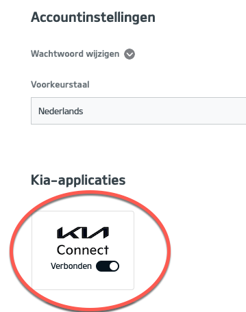 Meteen even geprobeerd: na inloggen krijg ik onderstaand scherm, dus helaas ik ben blijkbaar al verbonden met de Connect service. Maar geen auto data in de Connect App of MijnKia app...