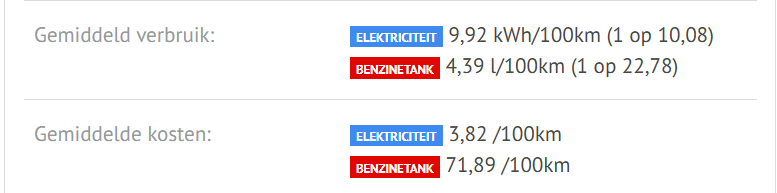 Laat ik voorop stellen dat je berekeningen kloppen. Ik heb alleen een indicatie willen geven mbt het verbruik. Zoals ik al schreef heb ik de liters, kwh's en kilometers ingevoerd bij de verbruiksmonitor van autoweek (accuraat). Hoe de berekening door autoweek gedaan wordt weet ik niet. Houd zelf ook een excel bestand bij. Daar heb ik op 30000 km 866 liter en 2374 kwh gebruikt. Ik ben zelf niet zo'n rekenaar maar de auto geeft zelf aan dat het verbruik totaal 4.3 l/100 km is. Het verbruik vind ik dus erg mee vallen en verkoop mijn Sportage voorlopig dus niet -