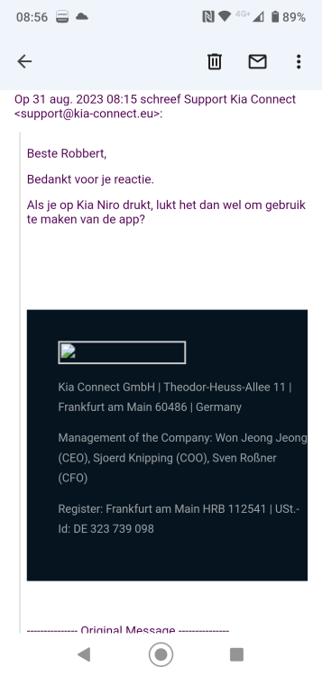 Nu krijg ik hem niet meer uit. Heb natuurlijk gegoogeld. De auto geeft aan: deactiveer de Valet modus via de Kia Connect app.