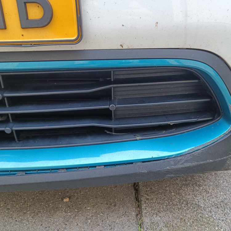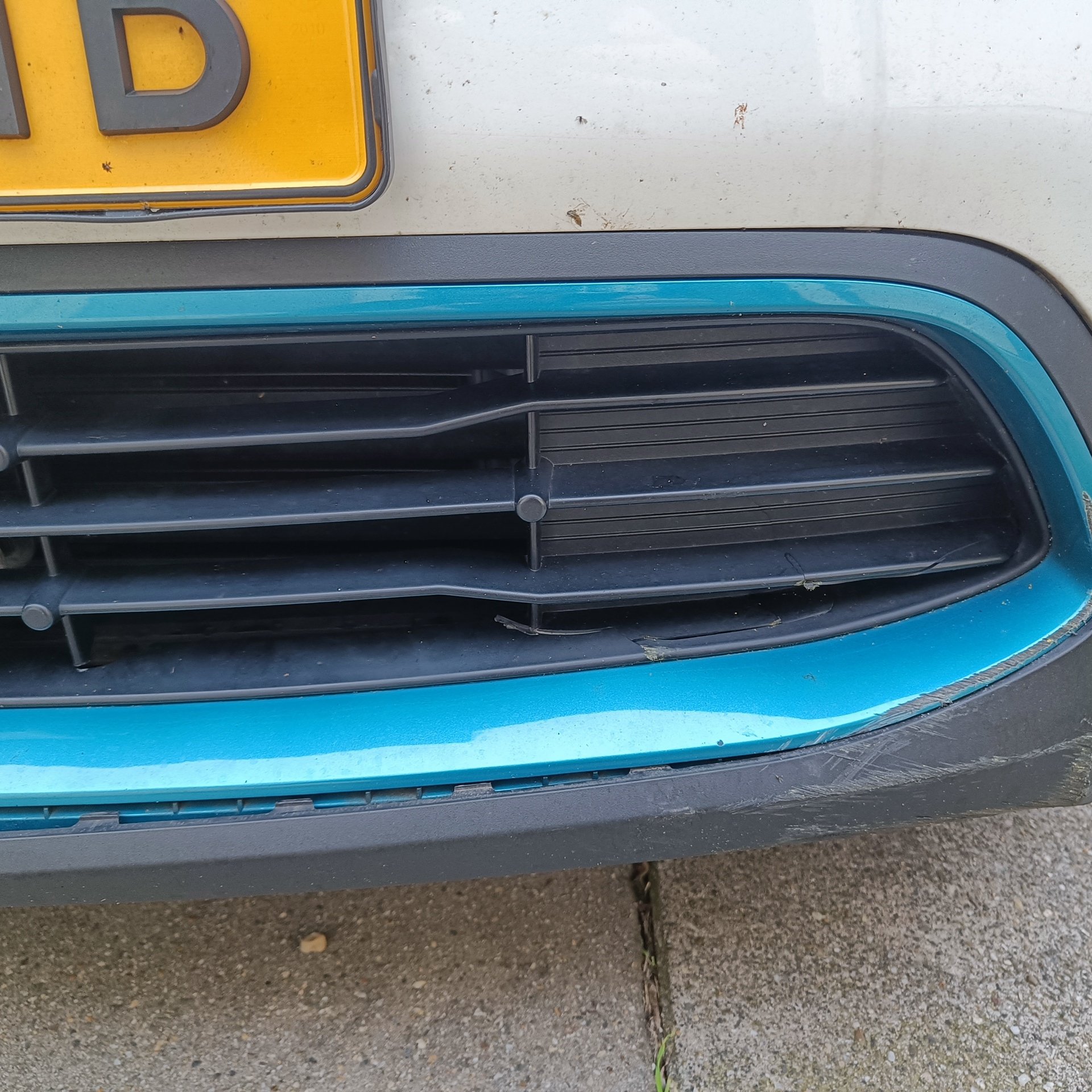 Wij hebben in een parkeergarage een behoorlijke schade gereden aan de voorbumper waardoor de zwarte onderspoiler, blauwe accent en grill zijn beschadigd, alsmede een stuk van de voorbumper.