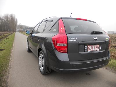 Lijkt me leuk om de bevindingen van mijn nieuwe wagen bij te houden hier als info en eigen back up Gaat dus over een KIA ceed SW "HEDGREN" editie CRDI 1.6 Piston Grey dit is de EX uitvoering met volgende packs erbij : Speciale uitrusting ceed SW Hedgren: - Business Pack: - Cruise control - Elektrisch bediende ruiten achteraan - Bluetooth - iPod aansluitingskabel - Privacy ruiten achteraan - Metaalkleur - Navigation Pack: - Geintegreerd navigatiesysteem - Achteruitrijcamera - Set Hedgren designer tassen Na een tweetal weken de wagen mogen afhalen en dit week end de eerste testritten gedaan Moet zeggen dat de wagen mij al verschillende malen zeer + heeft weten te verrassen . Errst het kleur had hem alleen nog maar op foto gezien maar even mooi in het echt . Motor neemt echt vlot op dacht dat de 90 pk / 235 Nm een beetje mager zou zijn maar dit valt reuze mee, nu nog eens testen in beladen toestand en in de bergen dat zal wel nog een ander beeld geven doch niet direct behoefte aan de 110pk/ 260Nm Ben vooral blij dat de motor terug met ketting aangedreven wordt en 6 versnellingen heeft Verder maakt deze echt weinig motorlawaai als ik 2500 Tr/ min rijd aan een 135 komt er bijna geen motorgeluid boven . Rolgeluiden vind ik wat minder zeker op van de Belgische betonbanen maar kan mss deels ook aan de banden liggen , anders bevallen de Michelins zeker wel .Spijtig dat er geen normaal reservewiel in kan , ik ga dit eens bekijken als de extra kofferberging eruit is mss is er dan wel genoeg plaats toch wel handig op reis een gewoon reservewiel Eens wat op en afritten genomen en de wagen blijft toch goed strak de weg houden . Sturen moet ik wel wat aan wennen , stuurhuis is electronisch en werd voor aflevering nog gecalibreerd een directere feeling mis ik wat Vrij sportief afgeveerd maar dat zie ik eerder als een pluspunt . De zetels dacht ik komen uit een hoger afwerkingsniveau met meer zijdelingse steun en lendenregeling; vrij hard ( als je van een renault kom) maar je zit er lekker vast in. Remmen goed ,mr zullen we eens testen als alles een beetje ingereden is . ISG systeem is wat schrikken de eerste malen als je stilvalt maar werkt anders zonder haperen zelfs bij bijna vriestemperaturen als ik echt ecologisch wil zijn pak ik de fiets Audiosysteem en gps werken perfect geen haperingen met gps / gsm / usb , dit is bij sommige blijkbaar minder de datum van de nav. kaarten ga ik eens bekijken dacht 2010. Stereo doet ook goed zijn best . Toch wel leuk en handig al die knopjes en functies , blijft een beetje speelgoed voor mij toch Mag dus wel zeggen dat ik zeeer tevreden rondkar met de ceed Foto's ga ik straks posten