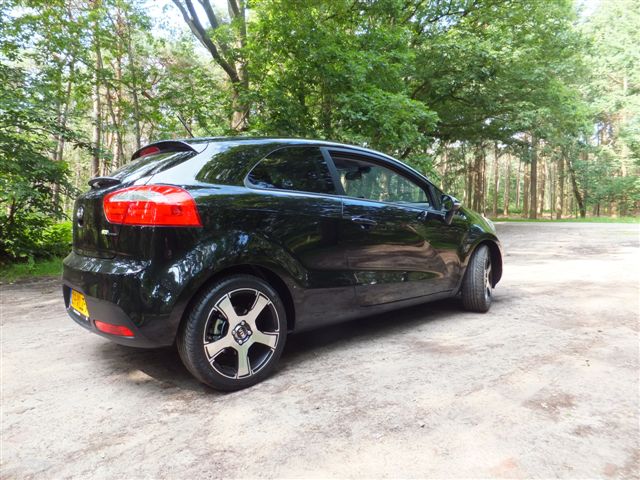 Hallo clubleden! Al maanden volg ik op de kiaclub foto's, reviews en gadgets om enthousiast te worden over dit merk. Na vier Fords heb ik toch besloten om aan een Kia te beginnen, deels vanwege het verbruik, mijn Focus 1.8 reed 8,5 liter per 100 km, maar zeker ook vanwege de looks! Ik heb gekozen voor een zwarte 3 deurs Rio 1.25 super pack met 17" Phantom velgen. Ik zie er nog erg weinig van op de weg trouwens! Verrassend lekker rijgedrag. Er zijn genoeg accessoires te koop om je voorlopig nog niet te vervelen! Top car! Groeten Alexx-61