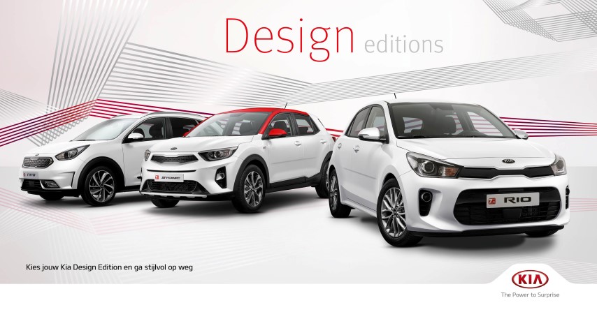 KCG Geplaatst 3 Maart, 2018 Topic Starter Geplaatst 3 Maart, 2018 Kia Design Editions: extra compleet met oog voor detail én design • Exclusieve uitvoering van de Kia Picanto, Rio, cee’d Sportswagon, Stonic, Niro en Sportage • Extra stijlvol design met onder meer lichtmetalen velgen en privacy glass • Rijk uitgerust met standaard een 7” touchscreen met full map navigatie • Slechts tijdelijk leverbaar Breukelen - 02 maart 2018 Kia presenteert de Design Editions: een exclusieve gelimiteerde uitvoering van de Picanto, Rio, cee’d Sportswagon, Stonic, Niro en Sportage waarbij design centraal staat. Tot de extra complete standaarduitrusting behoren onder andere lichtmetalen velgen, privacy glass, lederen bekleding en een schuif-/kantel zonnedak. De populaire Kia Picanto is als Design Edition uitgerust met de volgende extra’s: 16” lichtmetalen velgen, privacy glass, een zwarte B-stijl en een chromen strip onder de ramen. Uniek in zijn segment is het 7” touchscreen met full map navigatie. En ook een Interieur Colour Pack – met de keuze uit de kleuren Navy, Brown en Black – is aanwezig. De Kia Rio – winnaar van een Red Dot Design Award – is als Design Edition voorzien van 15” lichtmetalen velgen, een verstelbare middenarmsteun en Seatwear: een stijlvolle combinatie van kunstleder en microvezel die er luxe uitziet én aanvoelt. Ook deze Seatwear is beschikbaar in verschillende kleurcombinaties. Verder biedt de Design Edition behalve een fraai design een hoge mate van comfort dankzij 7” touchscreen met full map navigatie, airconditioning en Bluetooth connectiviteit. Ook de nieuwe Kia Stonic mocht een designprijs in ontvangst nemen, namelijk de prestigieuze iF Design Award. Het interieur van de Design Edition van de compacte crossover is eveneens voorzien van Seatwear, leverbaar in verschillende kleurcombinaties. De Kia Stonic Design Edition is verkrijgbaar vanaf € 22.055,-. Dit is inclusief airconditioning, cruise control inclusief snelheidsbegrenzer en 7” touchscreen met full map navigatie. De cee’d Sportswagon Design Edition is een veelzijdige auto met een bagageruimte van maar liefst maximaal 1.624 liter. Ook is de Design Edition standaard uitgerust met 16” lichtmetalen velgen en stijlvol privacy glass. Mede dankzij de dual zone climate control, een in hoogte verstelbare passagiersstoel en elektrische lendensteunverstelling voor de voorstoelen biedt de cee’d Sportswagon Design Edition comfort op een hoog niveau. Ook de populairste hybride van Nederland – de crossover Kia Niro – is er tijdelijk als Design Edition. Deze uitvoering wordt standaard geleverd als automaat, 18” lichtmetalen velgen, privacy glass, een schuif-/kantel zonnedak, stoelverwarming vóór en stuurwielverwarming. Ten slotte is er ook een Design Edition van de populaire Kia Sportage. De uitrusting is bijzonder compleet met standaard lederen bekleding, 8” touchscreen met full map navigatie, een JBL Premium Sound System en parkeersensoren voor. Verder zijn ook stoelverwarming vóór en achter, stuurwielverwarming, elektrisch verstelbare voorstoelen en smart key inclusief start-/stopknop standaard. Prijzen Kia Picanto Design Edition, v.a. € 15.995,- Kia Rio Design Edition, v.a. € 18.995,- Kia Stonic Design Edition, v.a. € 22.055,- Kia cee’d Sportswagon Design Edition, v.a. € 24.145,- Kia Niro Design Edition, v.a. € 31.795,- Kia Sportage Design Edition, € 32.685,- Een Kia met Private Lease is al beschikbaar vanaf € 189,- per maand. De stijlvolle Design Editions zijn beschikbaar vanaf € 239,- per maand. Quote