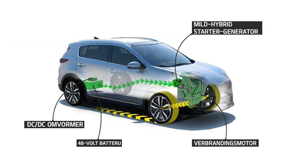 KCG Geplaatst 15 Mei, 2018 Topic Starter Geplaatst 15 Mei, 2018 Kia introduceert nieuwe diesel 48-volt mild-hybride aandrijflijn in 2018 • EcoDynamics+ diesel mild-hybride aandrijflijn ondersteunt acceleratie met behulp van 48-volt elektromotor • Betaalbare, compacte technologie eenvoudig te integreren in bestaande modellen • Biedt elektrisch vermogen en ontlast de motor tijdens accelereren • Vangt vrijgekomen energie tijdens remmen en uitrollen van auto op • Systeem beschikt over nieuwe functie van Stop & Start-systeem • Technologie reduceert CO2-emissie tot wel 4% volgens WLTP-methode (tot wel 7% met NEDC) in combinatie met handgeschakelde transmissie • Europese verkoop Kia Sportage met diesel 48-volt mild-hybride aandrijflijn start later in 2018, andere modellen en een benzine mild-hybride aandrijflijn volgen Breukelen - 15 mei 2018 Kia introduceert in de tweede helft van 2018 zijn eerste diesel 48-volt mild-hybride aandrijflijn. De populaire Kia Sportage krijgt daarbij de primeur. De nieuwe 'EcoDynamics+' aandrijflijn reduceert de CO2-uitstoot door de dieselmotor tijdens accelereren te ondersteunen met elektrische kracht afkomstig van een krachtige 48-volt batterij. Ook kan de motor met behulp van een nieuwe Mild-Hybrid Starter-Generator eerder worden uitgeschakeld om brandstof te besparen en emissies te beperken. De nieuwe EcoDynamics+ technologie is betaalbaar en compact en past om deze redenen perfect in de strategie van Kia om innovatieve auto’s betaalbaar aan te kunnen bieden aan een grote groep consumenten. De compacte componenten van het 48-volt mild-hybride systeem maken het mogelijk om het systeem in diverse bestaande voertuigen toe te passen, zonder in te hoeven leveren op de praktische bruikbaarheid van de auto. De Kia Sportage wordt in de tweede helft van 2018 als eerste model in Europa uitgerust met de EcoDynamics+ diesel 48-volt mild-hybride technologie. Diverse andere Kia-modellen, waaronder de nieuwe Kia Ceed, krijgen de nieuwe aandrijflijntechnologie in de loop van 2019. Het begin van iets groots Met de introductie van de 48-volt mild-hybride technologie is Kia de eerste autofabrikant ter wereld die naast deze nieuwe technologie ook hybride, plug-in hybride en batterij-elektrische auto’s aanbiedt aan consumenten. De 48-volt technologie maakt onderdeel uit van de uitgebreide elektrificatiestrategie van Kia, waarbij het merk in 2025 in totaal zestien voertuigen met elektrische aandrijving heeft geïntroduceerd: vijf hybrides, vijf plug-in hybrides, vijf volledig elektrische auto’s en zelfs een gloednieuwe brandstofcelauto (FCEV) in 2020. De EcoDynamics+ diesel mild-hybride aandrijflijn zorgt ervoor dat Kia nog schonere dieselmotoren kan aanbieden. Het systeem is gekoppeld aan de Selective Catalytic Reduction (SCR) unit om emissies actief te verlagen. Het resultaat is een tot 4% lagere CO2-uitstoot volgens de nieuwe en meer op de praktijk gerichte Worldwide harmonized Light vehicles Test Procedure – kortweg WLTP – en teruggerekend zelfs tot 7% lagere uitstoot met de New European Driving Cycle (NEDC). De uitrol van de diesel mild-hybrid technologie draagt bij aan het streven van Kia om de gemiddelde CO2-uitstoot van het complete gamma verder te verlagen. EcoDynamics+ heeft twee modi: ‘motor’ en ‘generator’ De mild-hybride technologie van Kia bestaat uit een compacte 0,46 kWh 48-volt lithium-ion batterij en een Mild-Hybrid Starter-Generator (MHSG). Door de MHSG elektronisch aan te sturen met behulp van een omvormer kan het systeem soepel schakelen tussen twee modi: ‘motor’ en ‘generator’. Het systeem is met een riem verbonden aan de krukas van de dieselmotor. In de modus ‘motor’ biedt MHSG tijdens accelereren tot wel 10 kW aan elektrische ondersteuningskracht aan de motor. De motor hoeft zo minder hard te werken en verbruikt dus minder brandstof maar produceert ook minder emissies. In ‘generator’ modus slaat het systeem kinetische energie – vrijgekomen tijdens het remmen of uitrollen van de auto – op en gebruikt deze energie om de batterij weer op te laden. Zo werkt EcoDynamics+ op de weg De aandrijflijn is zo ontworpen dat de verbrandingsmotor nog efficiënter presteert door deze te ondersteunen met elektrische kracht en het opvangen van energie. In de modus ‘motor’ haalt het systeem tijdens accelereren energie uit de batterij en voorziet de motor met deze energie van extra koppel zodat er een lichte boost ontstaat en de motor wordt ontlast. Tijdens uitrollen – bij een afdaling of het naderen van een kruispunt – schakelt MHSG over naar de ‘generator’ modus en vangt het systeem energie van de krukas op om de batterij onderweg weer op te laden. Het systeem wordt aangestuurd via een geavanceerde Electronic Control Unit (ECU), die precies kan berekenen hoe de beschikbare energie het beste kan worden gebruikt en houdt daarbij ook rekening met de resterende energie in de batterij. Batterijkracht kan ook gebruikt worden door de nieuwe ‘Moving Stop & Start’ functie. Als de batterij voldoende is opgeladen, schakelt de verbrandingsmotor automatisch uit tijdens het uitrollen of remmen. De MHSG kan daarna de motor – ongeacht de situatie – soepel opstarten zodra de bestuurder het gaspedaal indrukt. Compacte onderdelen maakt integratie in bestaande modellen mogelijk Dankzij de van nature compacte onderdelen kan Kia deze nieuwe EcoDynamics+ mild-hybride technologie eenvoudig toepassen in bestaande voertuigarchitecturen. Afhankelijk van het voertuig wordt de 48-volt batterij geplaatst onder de vloer van de bagageruimte, zodat de impact op de praktische bruikbaarheid van de auto minimaal is. Omdat de MHSG in directe verbinding staat met de motor en de krukas aandrijft via een riem, zijn de aanpassingen in de motorruimte zeer beperkt. De DC/DC omvormer van de 48-volt batterij maakt het mogelijk dat de nieuwe batterij in verbinding staat met de krachtvoorziening van het voertuig, met als gevolg dat er een aanzienlijk k