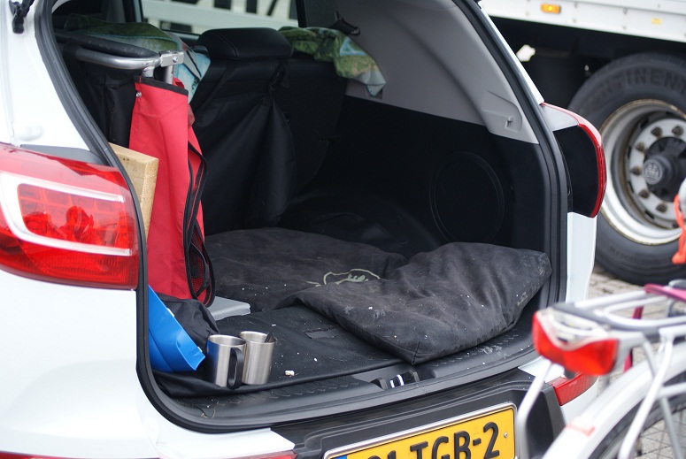 en natuurlijk had de hond ook haar eigen plek in de sportage