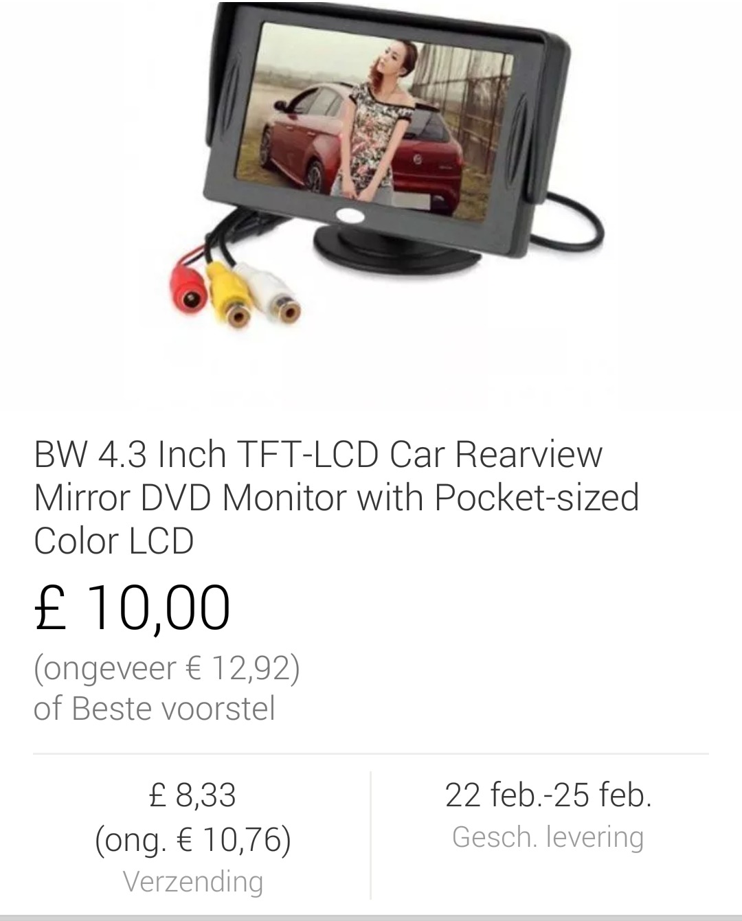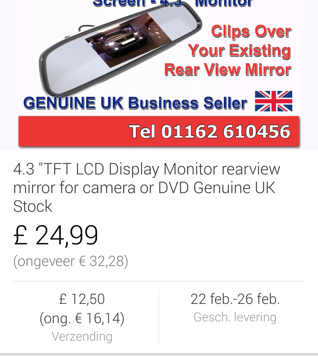Gast Vitara 2 Geplaatst 14 Februari, 2016 Geplaatst 14 Februari, 2016 Deze is wel een beetje aan de dure kant. Op E-bay.com betaal je hier nog geen €15,- incl verzendkosten voor. http://www.ebay.com/itm/Unique-4-3-TFT-Monitor-Car-Reverse-Rear-View-Mirror-for-Backup-Camera-US-DG-/231732146969?hash=item35f44ff319:g:9qQAAOSwl9BWLb~8 Quote