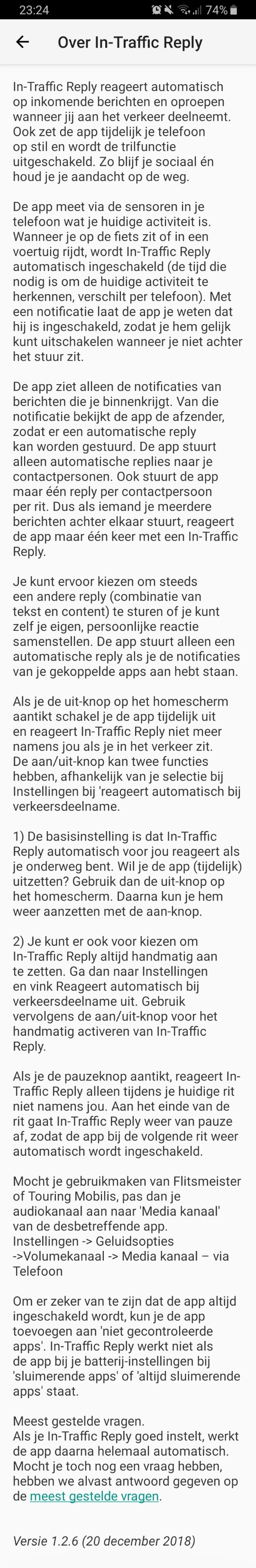 BarneyRubble Geplaatst 13 Februari, 2019 Geplaatst 13 Februari, 2019 (aangepast) Heb op dit moment Android 9, daar zit een geweldige App in die het beantwoorden wat me met AndroidAuto nog steeds niet lukt keurig voor me overneemt, je stelt die App in welke berichten jij door de app automatisch wil laten beantwoorden met standaard of zelf gekozen tekst. Je koppelt de App aan je Locatie en de App detecteerde vanzelf wanneer je op gegeven moment aan het rijden bent en schakeld zichzelf dan automatisch in, waar de telefoon zich ook bevindt op dat moment. Je kan die optie ook uitzetten en open jezelf de App voordat je gaat rijden, op welk voertuig dan ook. De App heet IN-TRAFFIC REPLY. 13 Februari, 2019 aangepast door Eric-H Quote