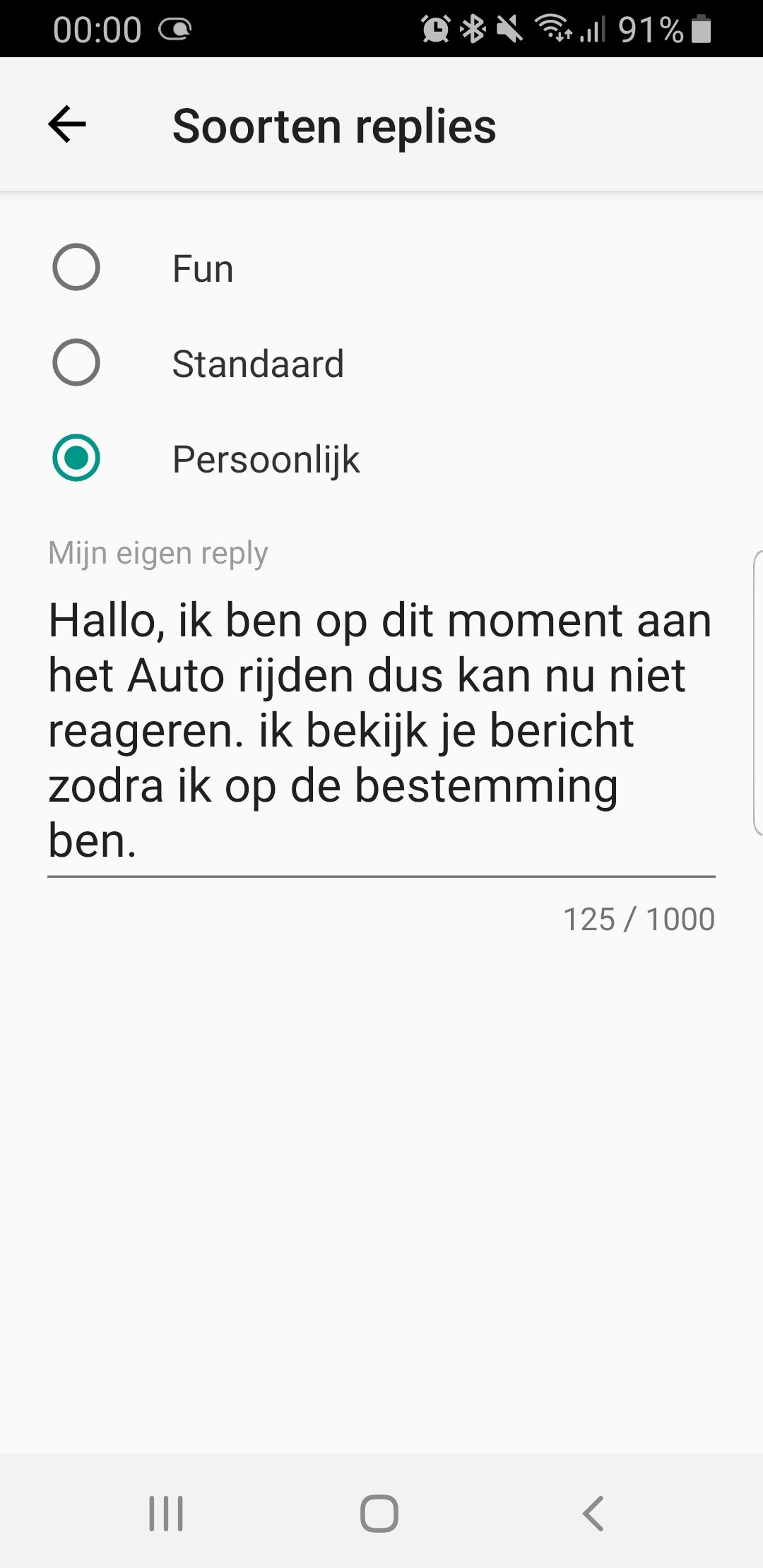 Dan typ je van te voren een antwoord bericht, bv, ik kan nu niet reageren want ben aan het auto rijden.