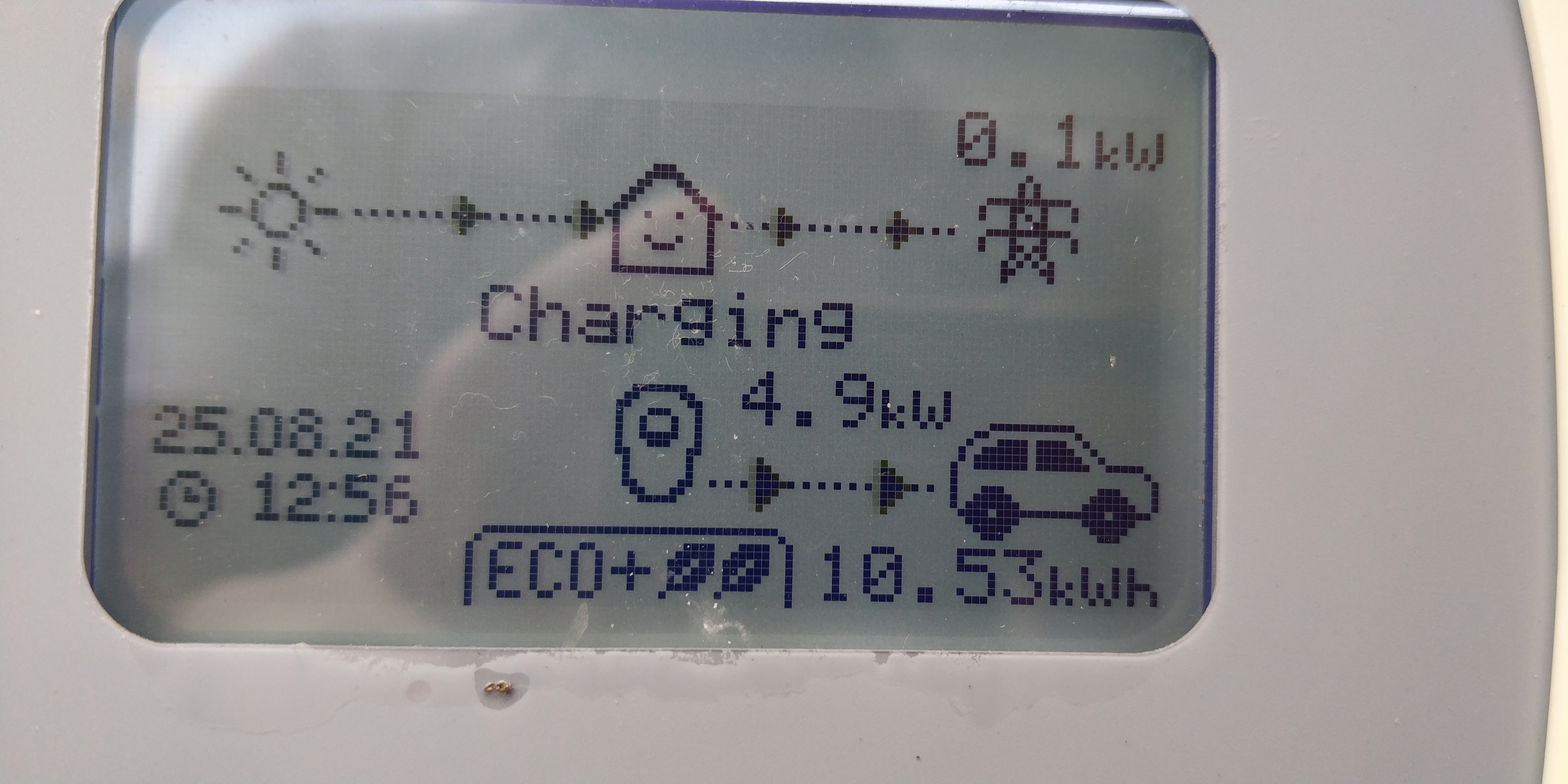 De auto staat nu op de Eco++ stand te laden overigens maar omdat het niet de hele tijd zonnig is gaat het laden niet supersnel, ook heb ik regelmatig de magnetron en waterkoker aan om iets te eten en drinken.