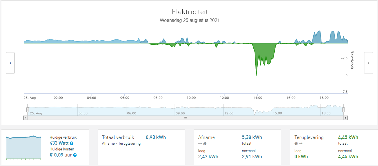 Het heeft zin om in de middag extra opwek te hebben ivm koken en auto laden. Overdag staat de auto ongeveer 4 van de 3 dagen voor de deur aan de lader waardoor er redelijk veel elektriciteit in kan komen.