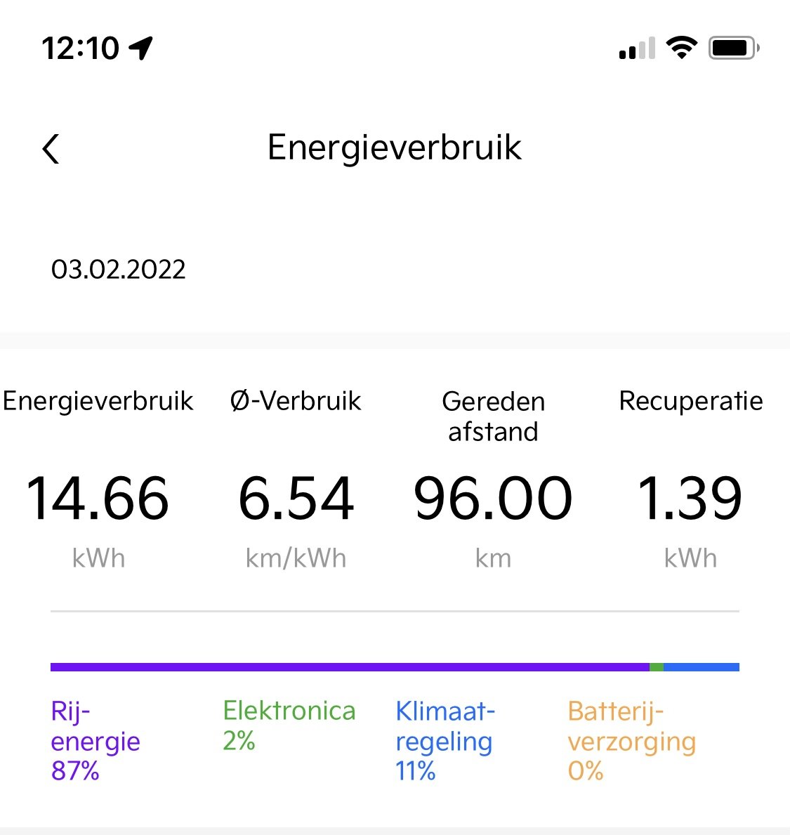 Vanmorgen een ritje gemaakt van 96 km. Gegevens over rit in app, zie eerste bijlage. Gegevens over rit op dashboard, zie bijlage 2.