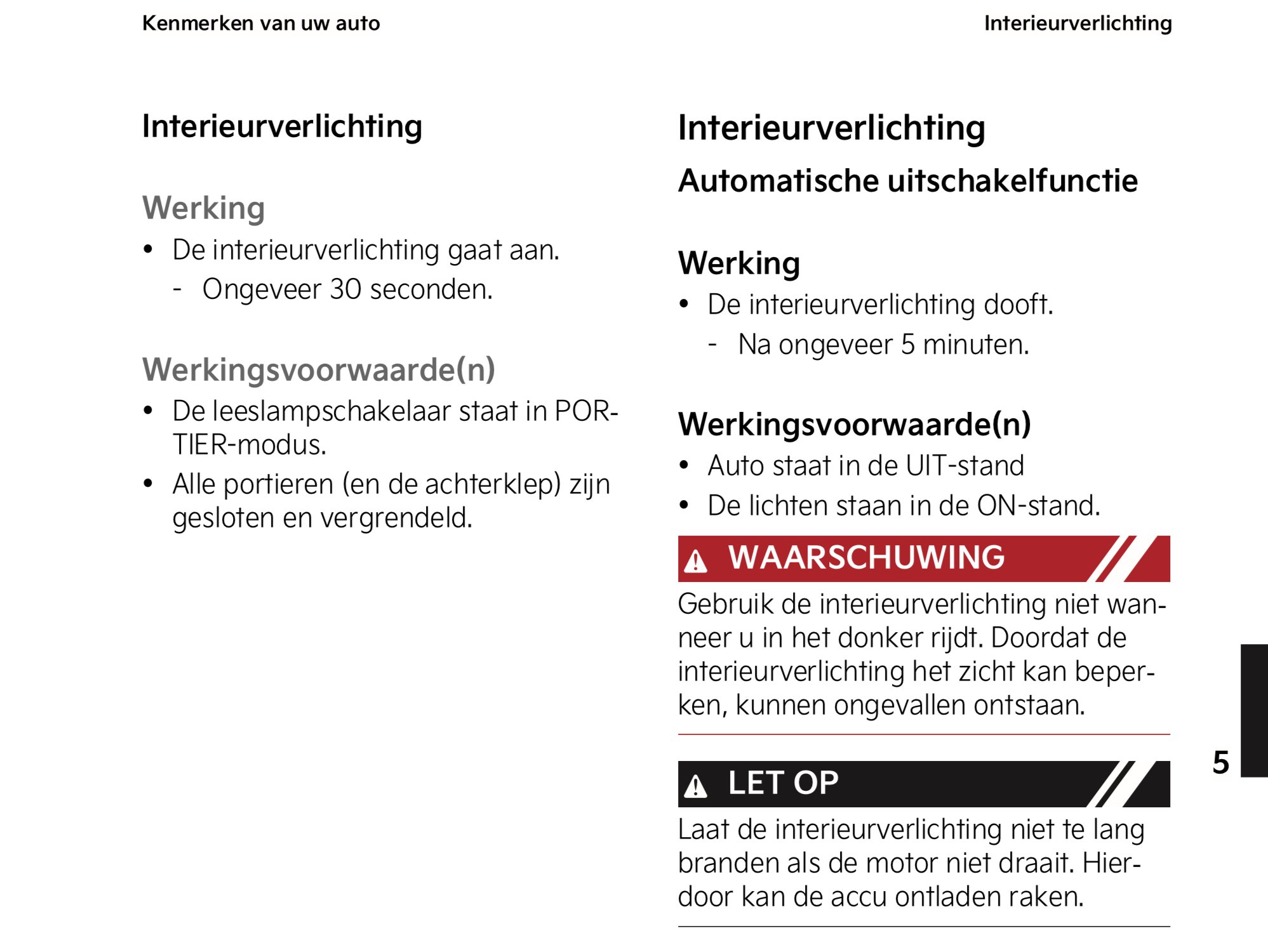 Ik zit me rot te zoeken in de instellingen om de plafondverlichting automatisch aan te laten gaan bij het instappen en bij het wegrijden natuurlijk automatisch uit, waar zit dat in hemelsnaam? Zag in de handleiding knop 3, maar dan gaan ze niet aan bij het instappen. Wie heeft de tip?