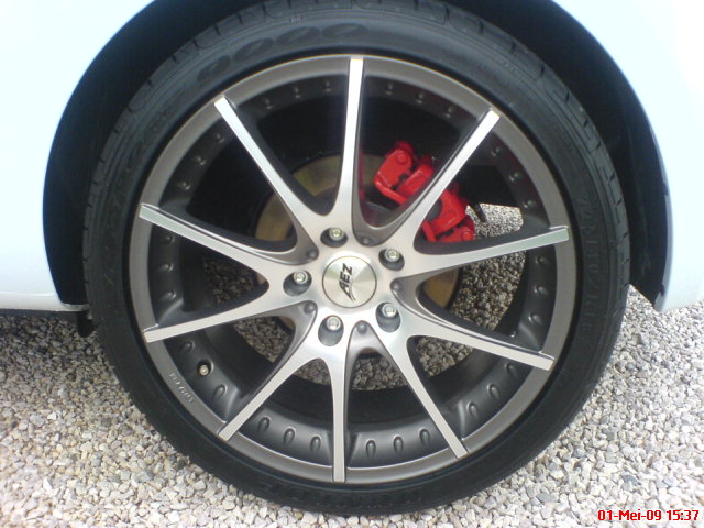 Btw die velgen zijn echt nice man, Wat heb je die betaald ? Heb hier ook nog zo een potje met rooie remklauw verf liggen, Heb nu pas xenon gestoken en nu nog is tijd maken voor Die klauwen te spuiten en dan is het de beurt aan Mr. Velgen :P