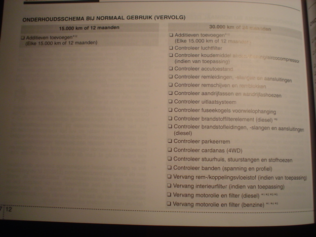 elmerblues Geplaatst 11 Juni, 2011 Geplaatst 11 Juni, 2011 NEEN in het boekje staat Hoofdstuk 7/12 Vervang motorolie en filter (benzine) *1 *4 *5 (Elke 30.000 km of 12 maanden) Boekje is maatgevend of ze hebben die listig herdrukt Het laatste. Bij mijn sportage, produktiedatum halverwege april, is die betreffende regel '30.000km of 12 maanden' verwijderd. Zie hier een foto uit mijn instructieboekje, bladzijde 7-12. *1 *4 *5 is hetzelfde gebleven: *1 = oliepeil elke 500km checken *4 = indien aanbevolen olie niet beschikbaar is, elke 15.000 wisselen *5 = motoroliepeil moet regelmatig worden gecontroleerd bladieblah Dit is dus een verschil met het ingescande instructieboekje zoals deze op het forum bekend is! Als ik mijn instructieboekje zou volgen, wat ik ook doe, zou ik 30.000km of 2 jaar kunnen aanhouden (rijden onder normale omstandigheden en met aanbevolen olie). Interval voor diesel en benzine is hierin gelijk getrokken. * EB maakt rondedansje Quote