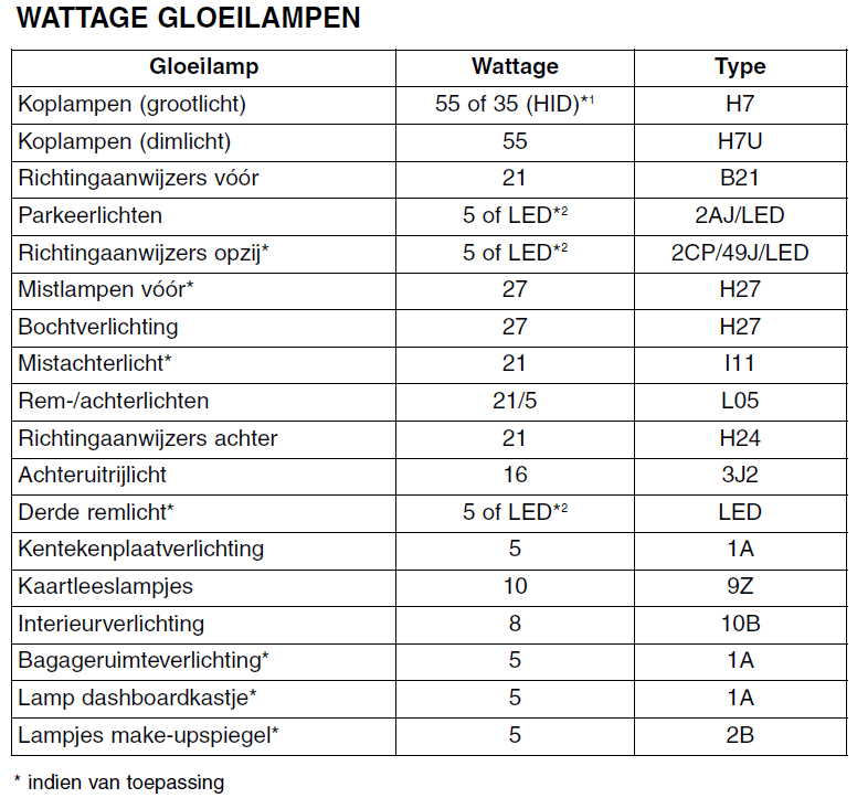 2011-sportage Geplaatst 3 Juli, 2011 Geplaatst 3 Juli, 2011 Zit even rond te kijken welke lampen kan ik vervangen . ik bedoel welke lamp kan ik vervangen voor LED, kwam wel al tegen op dit forum dat er gebruikers zijn die hun kenteken verlichting hebben vervangen voor led (LED 12V 10x36mm Wit ). Nu ben ik op zoek naar de verschillende type lampen die in mijn sportage zitten Bijvoorbeeld Kenteken verlichting : LED-Soffittenlamp 12V 10x36mm Wit leeslampje: ? binnenverlichting: ? stadslichten/pakeerlichten: ? Remlichten:? achterlichten:? Bochtverlichting:? Enz.Enz. Heeft iemand een lijstje in het instructieboekje kan ik wel vinden welk type gloeilamp maar bestaat er ook een lijstje welke Led daarvoor in de plaats kan Quote