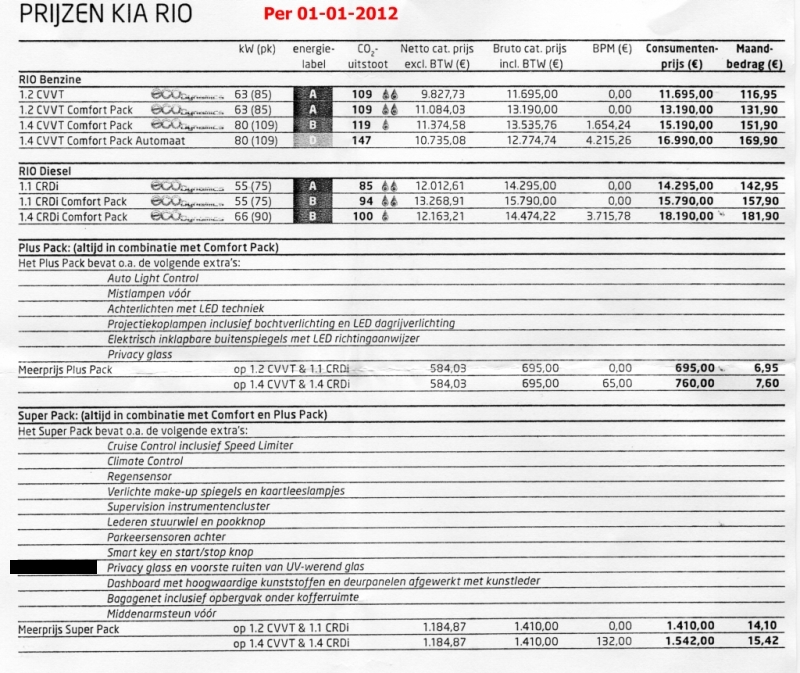 Per 01-01-2012 in de Rio-brochure: "Super Pack met privacy glass en voorste ruiten van UV-werend glas"